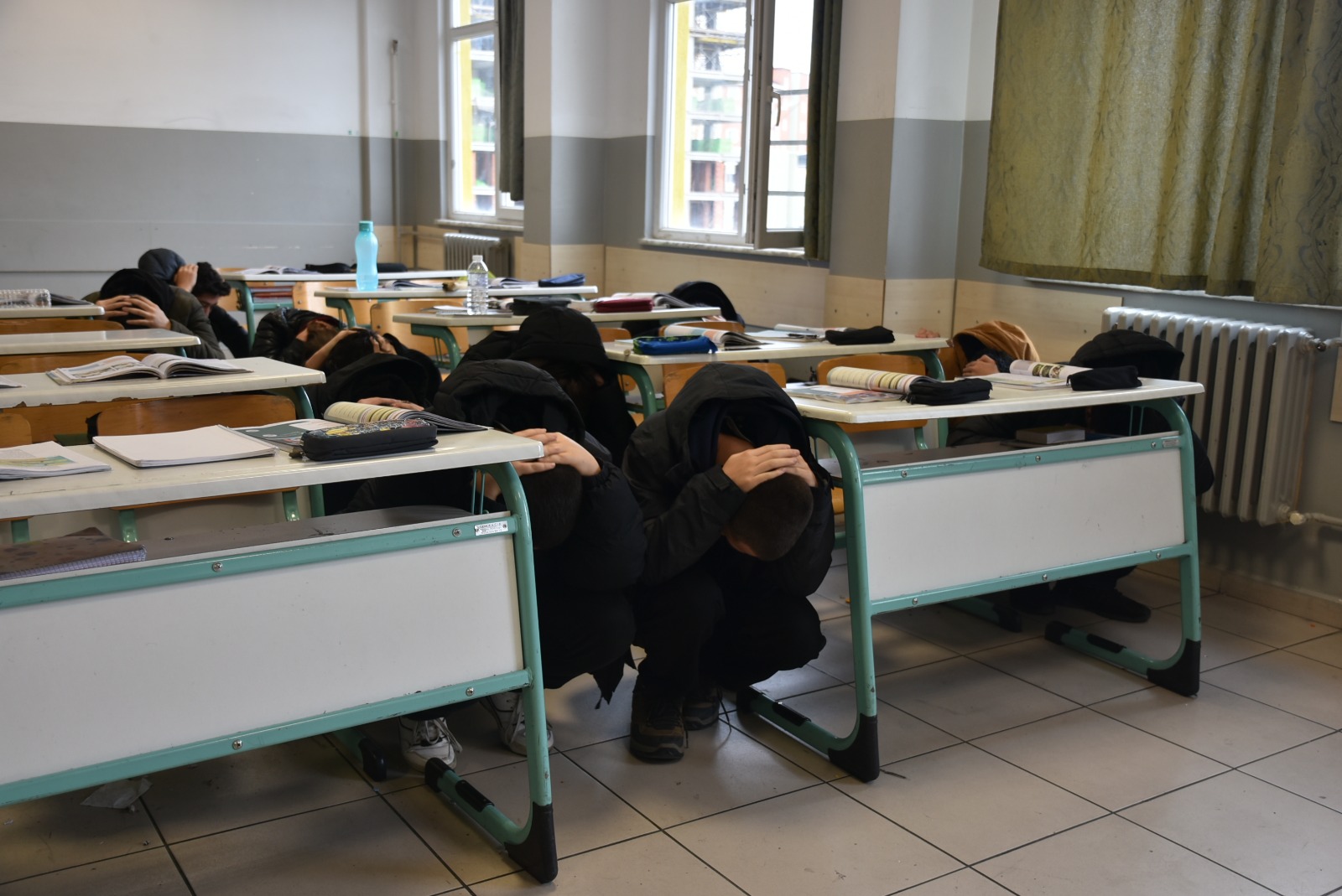 Tatbikat senaryosu gereği alarmın çalmasıyla birlikte öğretmen ve öğrenciler, deprem anında uygulanması gereken “çök–kapan–tutun” hareketini eş zamanlı olarak gerçekleştirdi. Senaryonun devamında okul binası kontrollü şekilde tahliye edilerek tüm katılımcılar güvenli toplanma alanına yönlendirildi. Tahliye sürecinin düzenli ve sakin bir şekilde yürütülmesi, afet anında panik yapılmamasının önemini bir kez daha ortaya koydu.